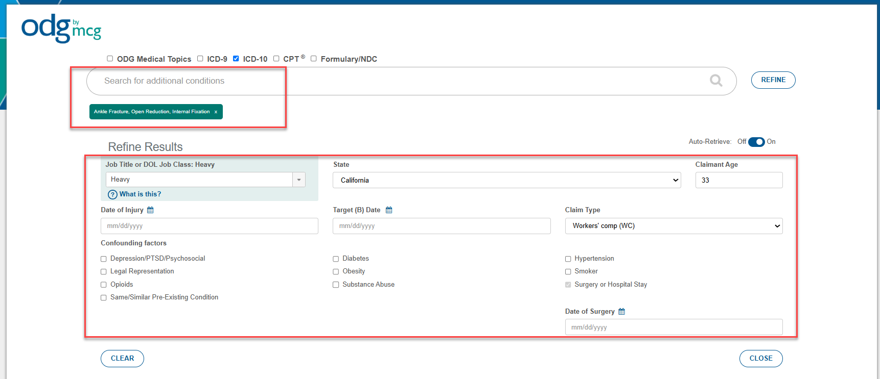 An integration between WebChart and ODG by MCGis available in the 2025-09RC. This integration can improve patient outcomes, reduce administrative costs, and streamline workflows by aligning with industry-standard guidelines. Integration with the ODG by MCG system to access evidence-based guidelines, benchmarking tools, and predictive modeling for best practice and average or maximum days away from work, improving return-to-work (RTW) timelines, medical costs, and quality of care. This integration provides a common framework based on extensive historical claims data (over 10 million lost-time cases), which helps manage costs, reduce inappropriate medical utilization, decrease indemnity costs, and improve worker and patient outcomes.